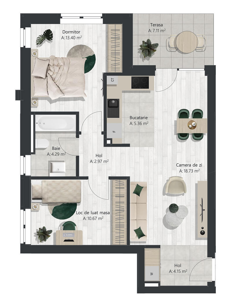 - Suprafaţă terasă 1: 7.11 mp
