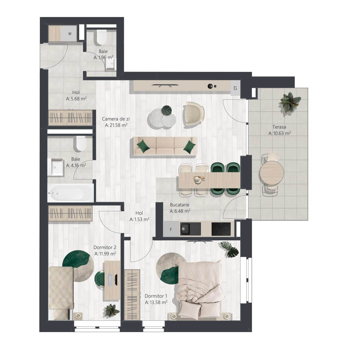 Descoperă un stil de viață modern și confortabil în inima verde a orașului Timișoara! Acest proiect rezidențial exclusivist cuprinde un total de 116 apartamente, construite cu cele mai bune finisaje și materiale de calitate superioară, care asigură durabilitate și estetica desăvârșită. Fiecare locuință beneficiază de un sistem inovator de încălzire în pardoseală, garantând confort termic și eficiență energetică pe tot parcursul anului.