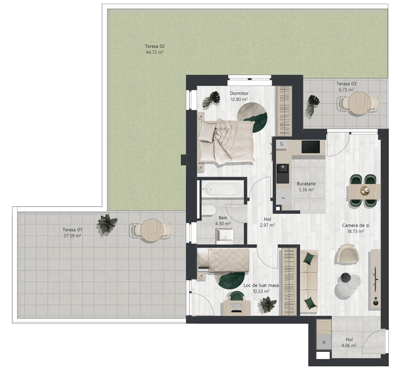 - Suprafaţă terasă 2: 27.59 mp