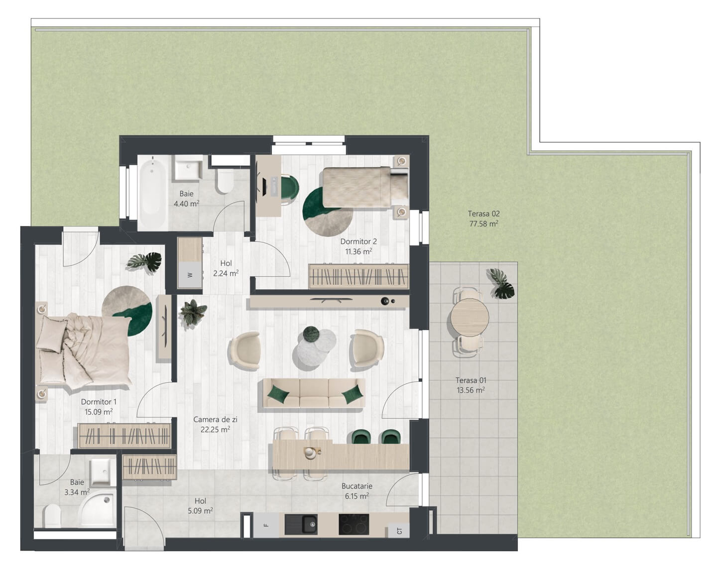 Descoperă un stil de viață modern și confortabil în inima verde a orașului Timișoara! Acest proiect rezidențial exclusivist cuprinde un total de 116 apartamente, construite cu cele mai bune finisaje și materiale de calitate superioară, care asigură durabilitate și estetica desăvârșită. Fiecare locuință beneficiază de un sistem inovator de încălzire în pardoseală, garantând confort termic și eficiență energetică pe tot parcursul anului.