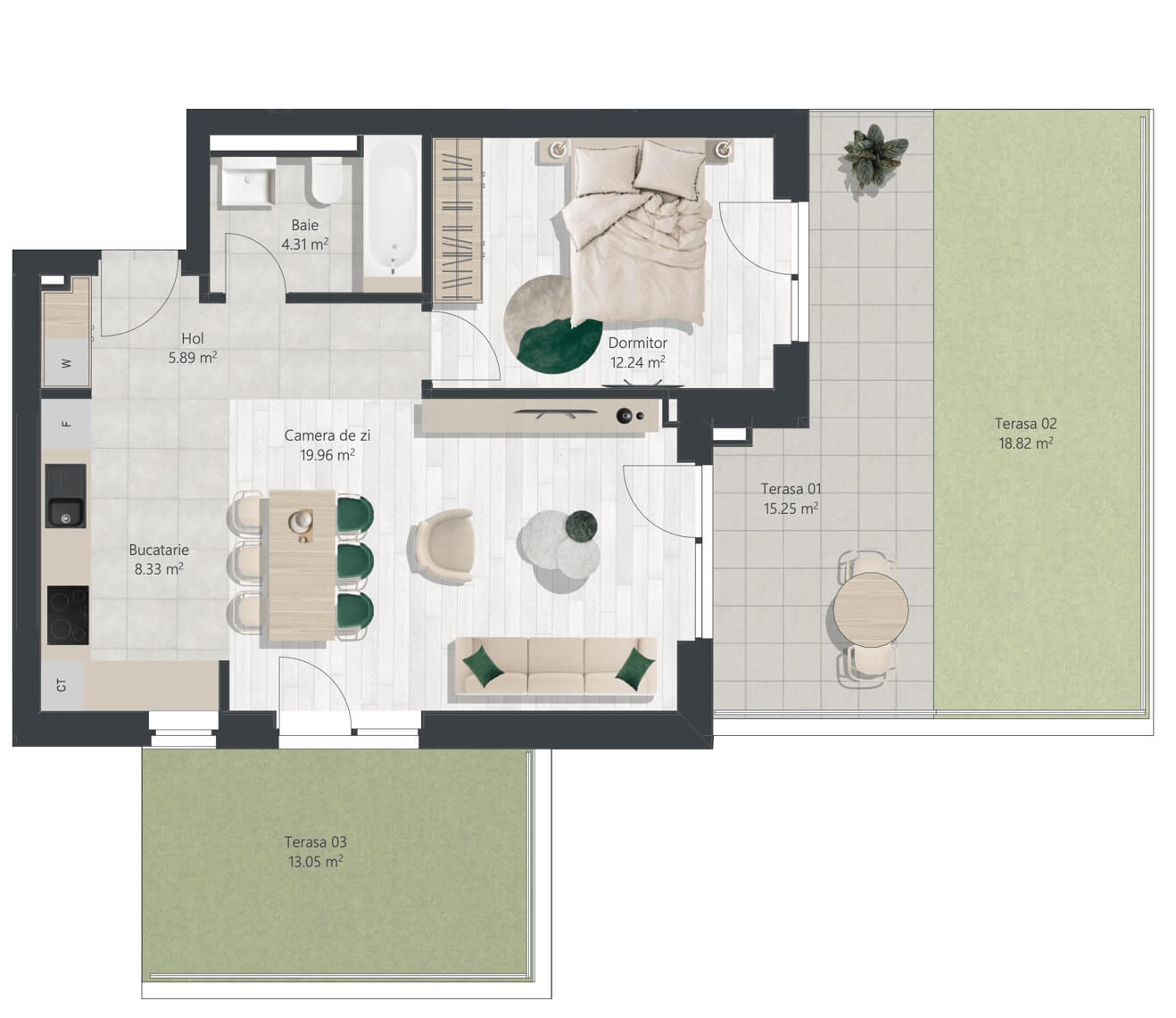 Descoperă un stil de viață modern și confortabil în inima verde a orașului Timișoara! Acest proiect rezidențial exclusivist cuprinde un total de 116 apartamente, construite cu cele mai bune finisaje și materiale de calitate superioară, care asigură durabilitate și estetica desăvârșită. Fiecare locuință beneficiază de un sistem inovator de încălzire în pardoseală, garantând confort termic și eficiență energetică pe tot parcursul anului.