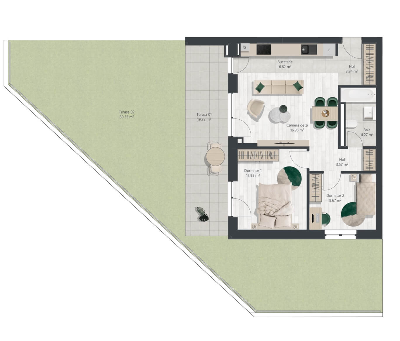 Descoperă un stil de viață modern și confortabil în inima verde a orașului Timișoara! Acest proiect rezidențial exclusivist cuprinde un total de 116 apartamente, construite cu cele mai bune finisaje și materiale de calitate superioară, care asigură durabilitate și estetica desăvârșită. Fiecare locuință beneficiază de un sistem inovator de încălzire în pardoseală, garantând confort termic și eficiență energetică pe tot parcursul anului.